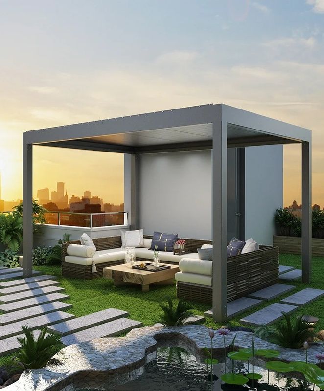 Cuando los niños quieren jugar afuera en una tarde soleada, el pabellón con persianas de aluminio se convierte en un refugio seguro.el pabellón es 5-7 ° C más frío que el área circundanteEl marco de aluminio 6063-T5 es lo suficientemente resistente como para que los niños se apoyen en él, y los bordes suaves de las persianas (¡sin esquinas afiladas!) los mantienen seguros.Incluso puede bajar las cortinas laterales opcionales para mantener los juguetes dentro y los insectos fueraLo mejor de todo es que un enjuague rápido con agua luego elimina cualquier suciedad o derrame de jugo sin fregar, sin manchas.